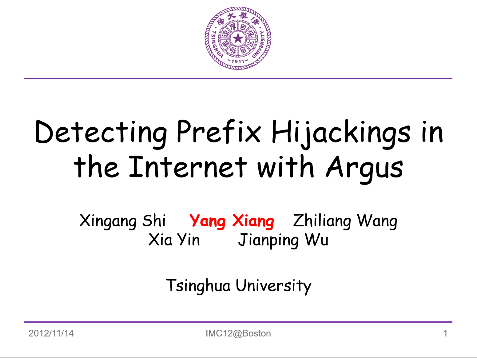 Xingang Shi, Yang Xiang, Xia Yin, Zhiliang Wang, Jianping Wu from Tsinghua University