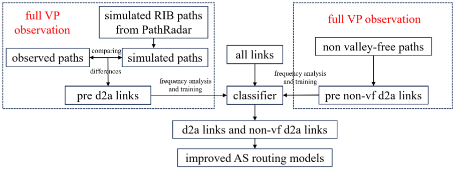 PathRadar employs policy-based and stitching-based methods to infer AS paths with distinct observational features, and utilizes PLP to enhance inference precision. Consequently, it achieves comprehensive and accurate inference of AS-level paths, prefix-specific paths, and non-valley-free paths. You can learn more about PathRadar in INFOCOM 2025.