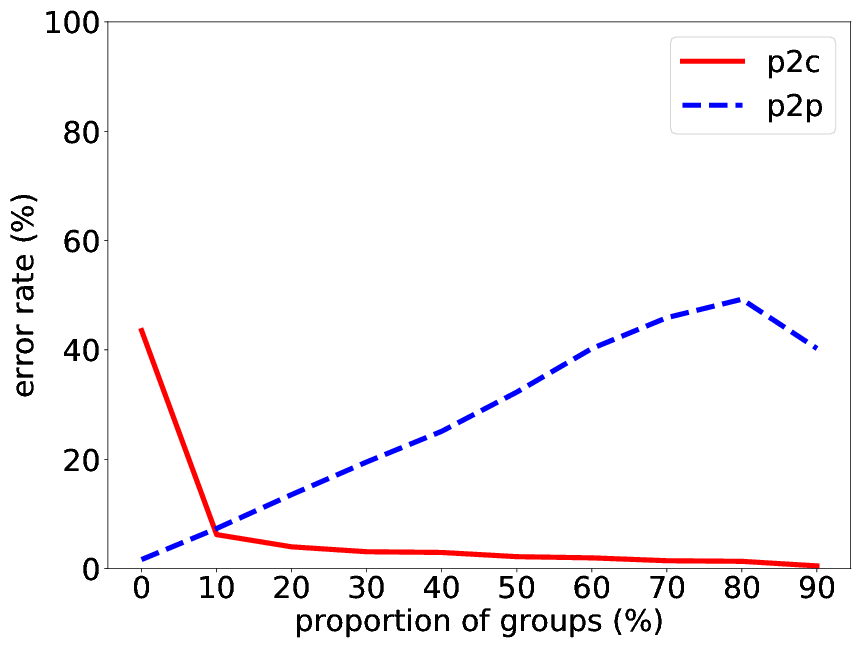 Aggregated observation bias from limited VPs. The observation bias of each VP not only exists, but also differs a lot from each other. This will lead to an aggregated observation bias closely related to the set of VPs an inference algorithm takes as input. The lack of observations on AS links will trick inference algorithms that depend much on link's basic proporties. To overcome the sensitivity of empirical rules, TopoScope uses a simple but powerful ensemble learning technique, i.e., voting, to find those empirically derived relationships that are not sensitive to the removal of observations. It should be noted that, there are definitely many hidden links, especially p2p links, that cannot be seen by any of these VPs. We will solve the problem later.
