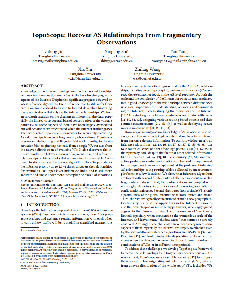 Zitong Jin, Xingang Shi, Yan Yang, Xia Yin, Zhiliang Wang, Jianping Wu from Tsinghua University