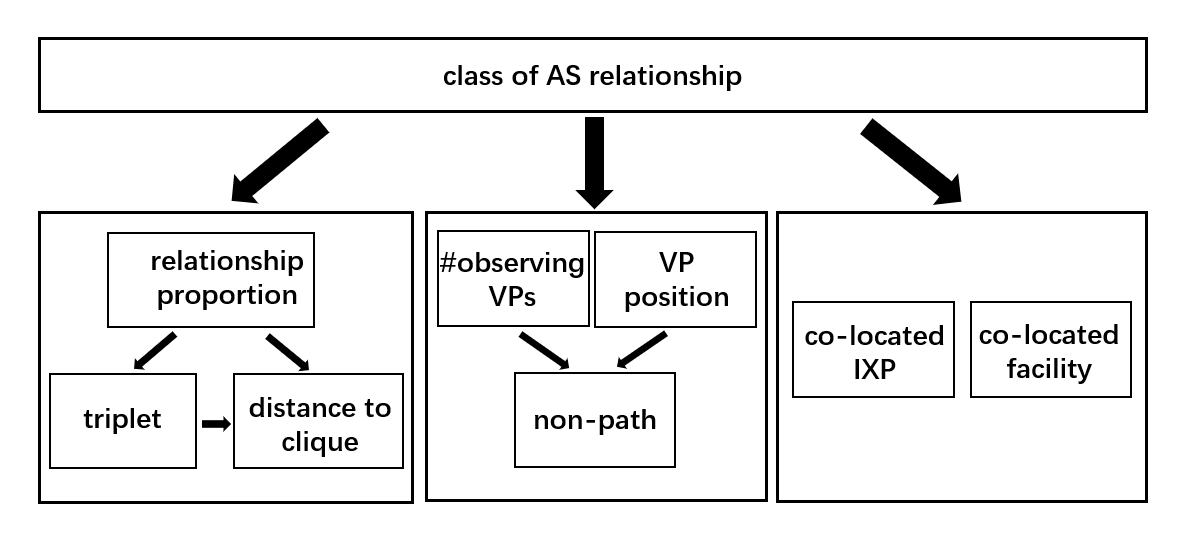 Nowadays, the Internet is composed of more than 60,000 autonomous systems (ASes). Based on their business contracts, these ASes propagate prefixes and exchange routing information with each other to control how traffic will be routed. In a simplified manner, the business contracts are often represented by the AS-to-AS relationships, including peer-to-peer (p2p), customer-to-provider (c2p) and provider-to-customer (p2c), in the AS level topology. As both the scale and the complexity of the Internet grow at an unprecedented rate, a good knowledge of the relationships between different ASes is of great importance for many aspects of Internet research.